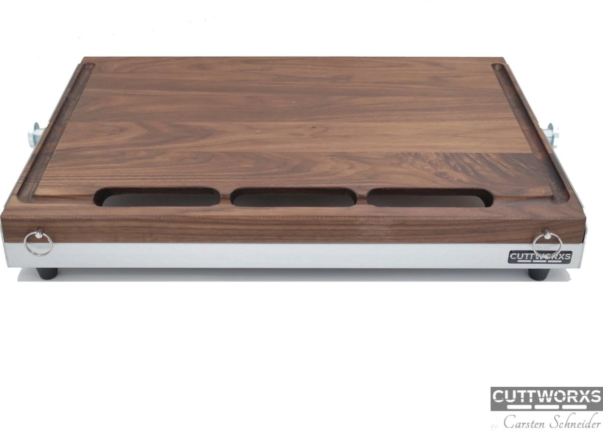 Het is een snijplank, werkplaats en werkplek in één. Het bovenblad is vervaardigd van hoogwaardig van fijn notenhout. En is een absolute “must have” voor veeleisende gebruikers die een functionele en schone werkplek wensen voor het bereiden van gerechten. Bijna geen enkele ander keukenaccessoire is zo stijlvol als de Big Cuttworxs Infinity Snijplank met de geïntegreerde gastronorm opvangbak.