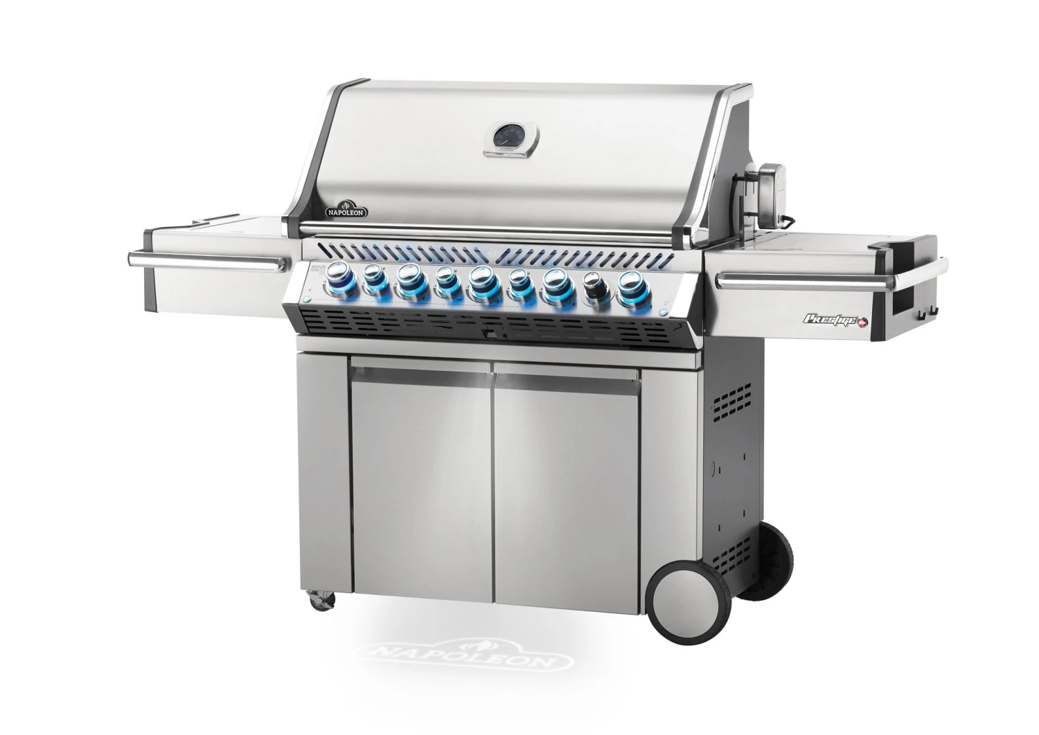 De Napoleon Prestige PRO 665-3 is uitgerust met maarliefst 5 hoofdbranders, 1 infrarood achterbrander en een infrarood SIZZLE ZONE zijbrander voor het dichtschroeien van gerechten. Een andere bijzondere optie is de ingebouwde SMOKER TRAY waar je rooksnippers in kunt doen voor een heerlijke rooksmaak aan je gerechten. De SMOKER TRAY is voorzien van een aparte brander. De deksel van de Napoleon Prestige PRO 665 is voorzien van een LIFT EASE systeem voor makkelijke bediening. Ook heeft deze barbecue binnenverlichting waardoor hij ook goed te gebruiken is in het donker. de prestige pro 665-3 heeft ook de SAFETY GLOW verlichting. Zo weet je precies welke brander in gebruik is en welke uit staat.