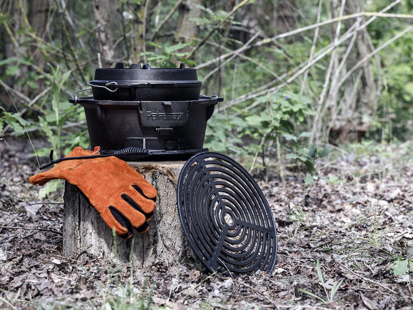 Het gietijzeren materiaal van de barbecue zorgt voor een gelijkmatige warmteverdeling en behoudt de warmte goed, waardoor het gemakkelijk is om het vuur te regelen en voedsel te bereiden met een mooie krokante korst. Tevens kan je de bbq gemakkelijk combineren met je bestaande Petromax Dutch Oven.Â