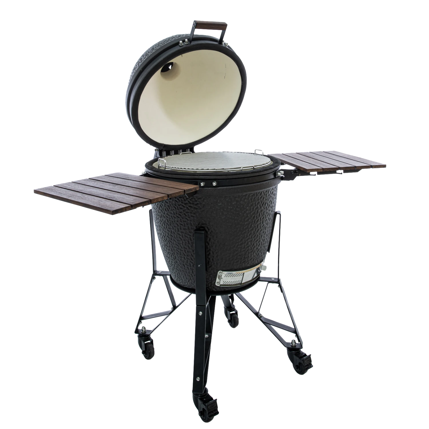 De nieuwe 2022 Bastard Urban Large! Als je echt alles uit The Bastard wilt halen, graag voor meerdere mensen kookt en je hebt de ruimte? Dan is dit formaat de beste keuze. En een echte aanwinst voor in je tuin of op je terras. The Bastard Large complete set is verkrijgbaar in het zwart en matzwarte editie “Urban”. De set wordt met onderstel en zijtafels geleverd. The Bastard Large is dankzij het stevige en stoere onderstel eenvoudig te verplaatsen.